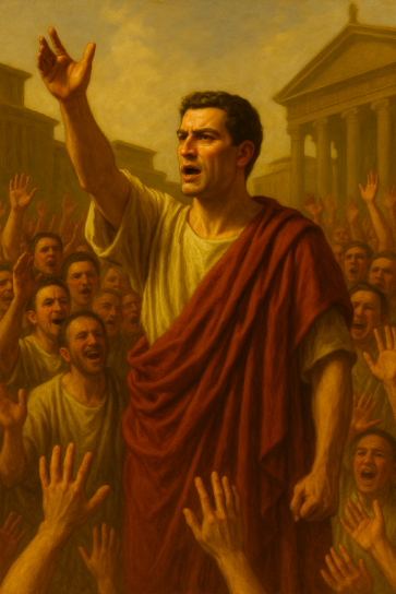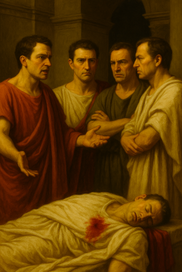 Act 3, Scene 2 — the BIGGEST verbal battle in the play. In Act 3, Scene 1, Julius Caesar was assassinated inside the Senate by a group of conspirators led by Brutus and Cassius. They claimed they did it to protect Rome from Caesar’s ambition, fearing he would become a dictator.