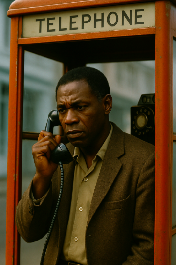 The man tries to explain—his skin is Black but his palms and soles are white. The landlady responds with silence and hangs up, exposing her prejudice.