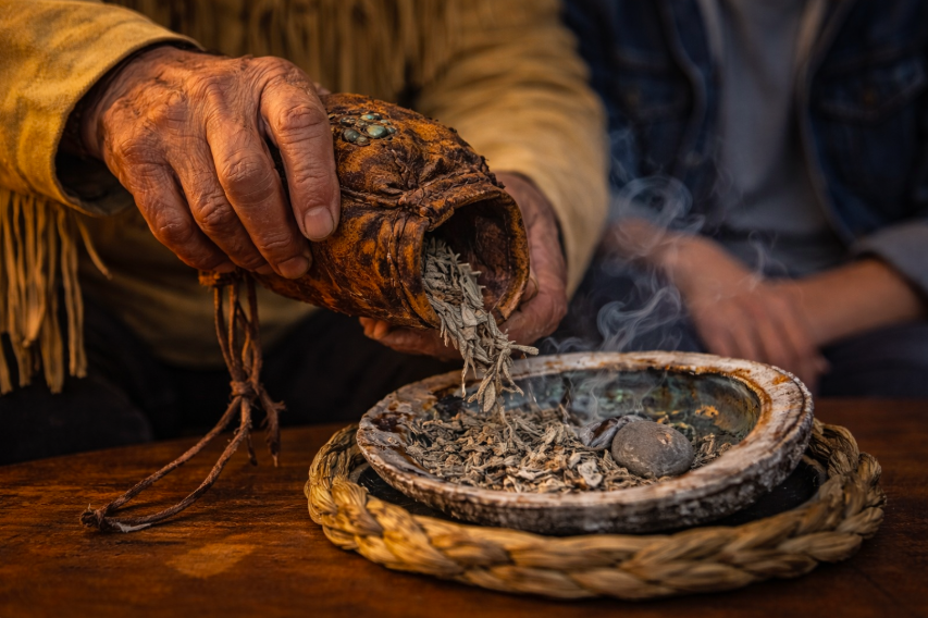 At last, Grandpa takes the medicine bag from around his neck and shows it to Martin. Inside the bag, there are three things: a piece of iron, a small stone from the place of the vision, the butte, and a piece of the sacred sage. What is a sacred sage? So sacred sage is a sacred plant for the native Americans, which has medicinal properties and is also believed to cleanse the spirit, soul, and body. It represents their culture and tradition.
